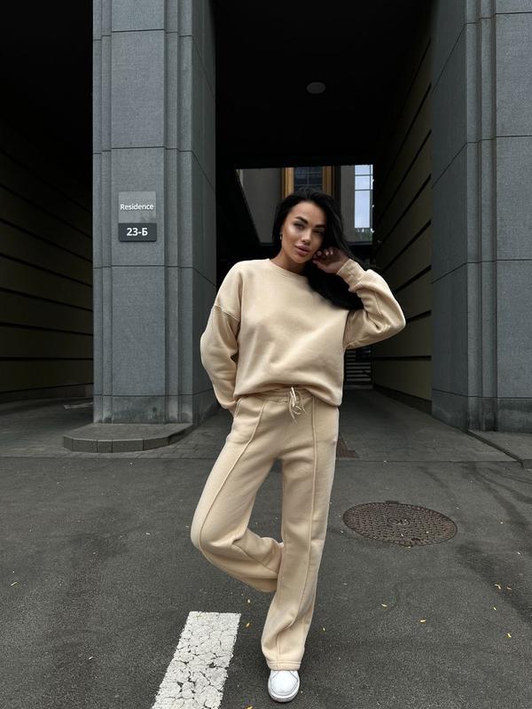 🎀 Крутой и теплый костюм с модными и стильными брюками палаццо 🎀 💫Мягкая и очень приятная на ощупь ткань🥰 ✅Доступен в трех цветах🙀 МОД 107 ▫Тканина: тринитка на флісі ▫Размерный ряд: 42/44, 46/48, 50/52 📐Замеры ▫ Размер 1(42/44) ОГ110, спинка 65, ОБ 100, длина брюк 105 ▫Размер 2(46/48) ОГ 115, спинка 65, ОБ 110, длина брюк 106 ▫ Размер 3 (50/52) ОГ 120, спинка 67, ОБ 117, длина брюк 107 ▫Цвета: графит, черный и беж 🤎Успей приобрести по доступной цене🩵