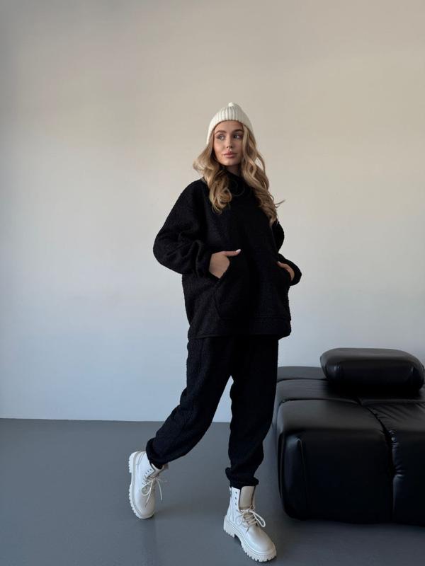 Идеальный костюм на холодную зиму, очень теплый, мягкий и приятный к телу. Обробка трикотажним кантиком.