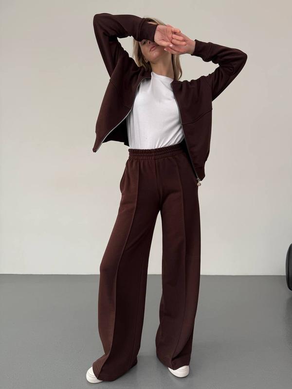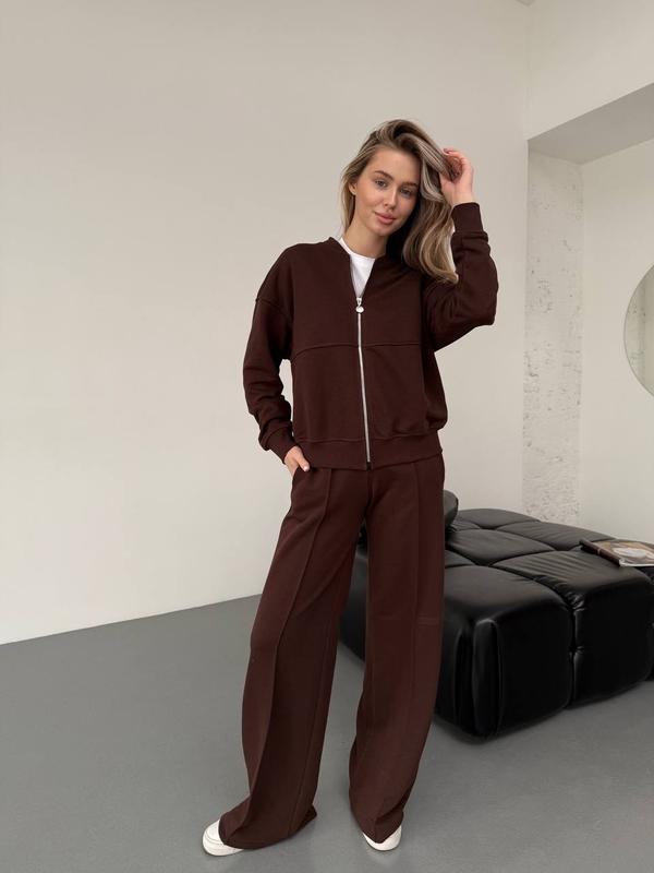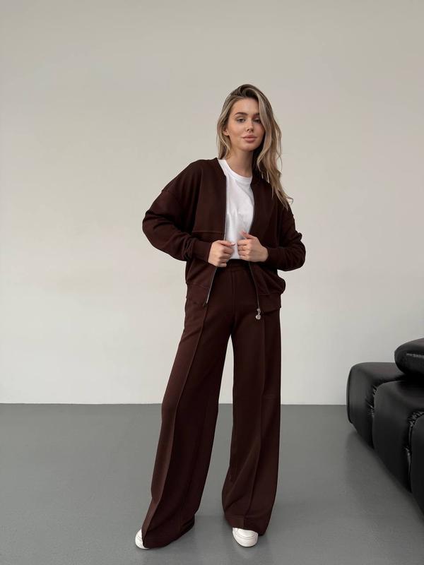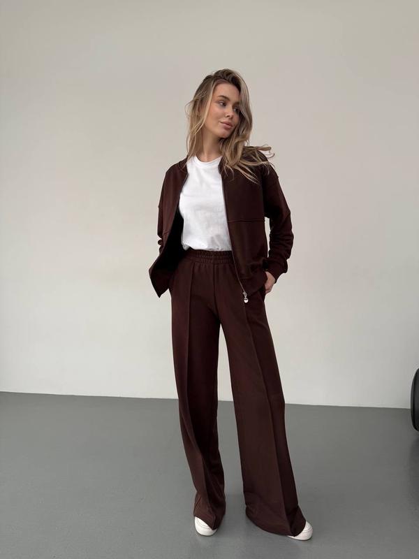 Наша новинка это сочетание стиля и комфорта!!Очень качественный пошив!! Хорошая посадка!! Бомбер и штаны палаццо выполнены из натуральной ткани хлопка трехнить петля Производитель Турция состав 90/10!Качество Премиум 💯