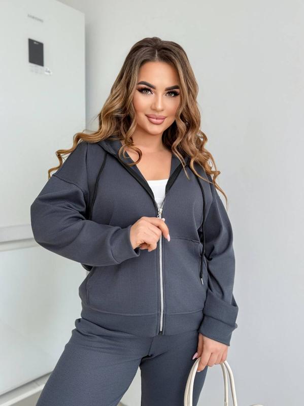 Кофта «худи» с двойным капюшоном на молнии. Со стильными перестрочками.
