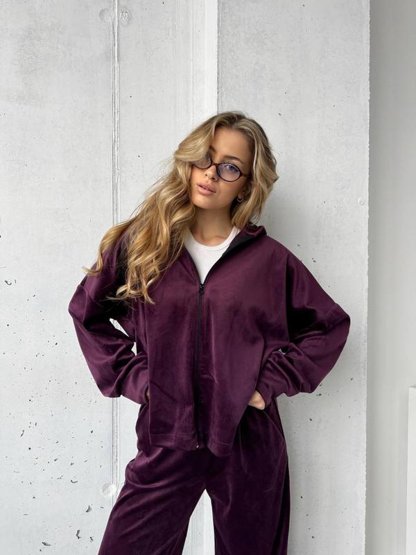 Велюровый костюм двойка - брюки и кофта на молнии с капюшоном