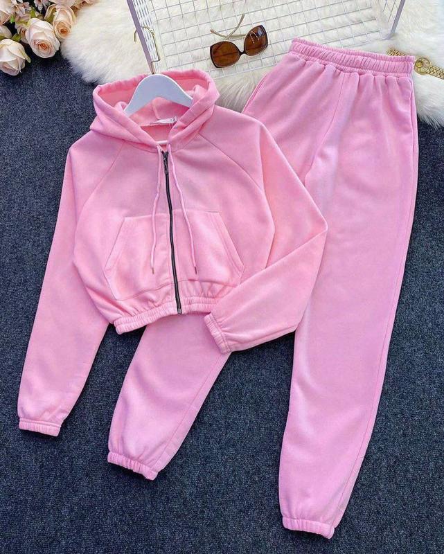 Костюм : кофта + джоггери Модель 171 Тканина: двохнитка Цвет: розовый, белый, серый, голубой, черный Размер : 42/44 46/48 50/52 вывид) Костюм который сочетаю стиль и комфорт: высокая посадка, свободный крой, современный дизайн. Костюм который будет актуальным не один сезон