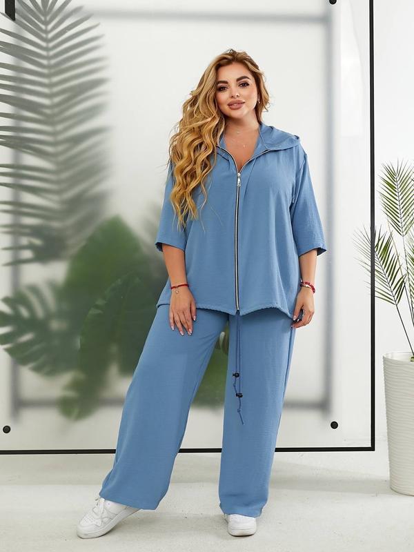 Костюм Модель 2019 Костюм -2ка Тканина : амереканский креп Розмір :48-50,52-54,56-58,60-62 Коляр : Мокко , чорний, індиго . Наша трендова новинка підкорить серце кожної жінки! Стильний літній костюм із широкими штанами доступний до замовлення в трьох модних кольорах. Напрочуд зручний і приємний до тіла комплект прикрасить жіночу фігуру та додасть образу чарівності. Заміри на кофту!! 48-50 Обхват грудей 130 Обхват стегон 140 Довжина виробу 70см. Довжина рукава 0.35 52-54 Обхват грудей 136 Обхват стегон 146 Довжина виробу 0.70 Довжина рукава 0.35 56-58 Обхват грудей 142 Обхват стегон 152 Довжина виробу 0.70 Довжина рукава 0.35 60-62 Обхват грудей 148 Обхват стегон 158 Довжина рукава 0.35 Довжина виробу 0.70 Заміри на штани!! Обхват стегон 48-50 120см 52-54.126 56-58 132 60-62 140см Пояс 48-50 116 52-54 120 56-58 125 60-62 130