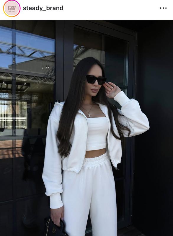 Худі на затяжках, що дуже зручно та з капюшоном. Штани підійдуть на зріст 1.65-1.70 та нижче. Колір - молоко, без флісу.