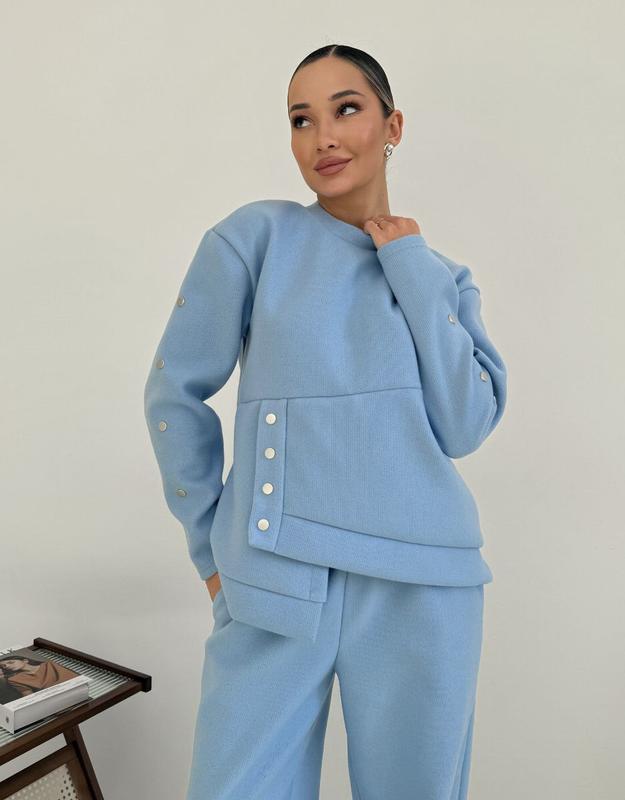 🚨 НоВинКа🚨 💖💞Фото реал 💞💖 Арт 6-768 Цена 1360 грн Размер: 1 (42-46), 2 (48-52) Женский костюм из качественной, плотной ангоры (качество лучше): штаны палаццо с высокой посадкой, с карманами. Кофта украшена кнопками (не ржавеют). анк