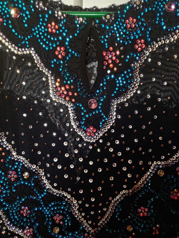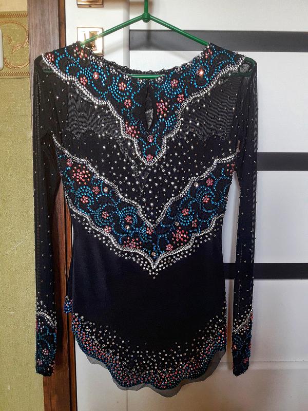 Шикарный купальник для выступлений. Был пошит на заказ. На рост +-160 см. Одет 2 раза на соревнованиях, с того времени висел в шкафу. Состояние нового, без дефектов. Урашен очень большим количеством камней.