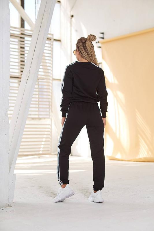 Костюм Adidas original черного цвета с классическими белыми полосками: свитшот-штаны.