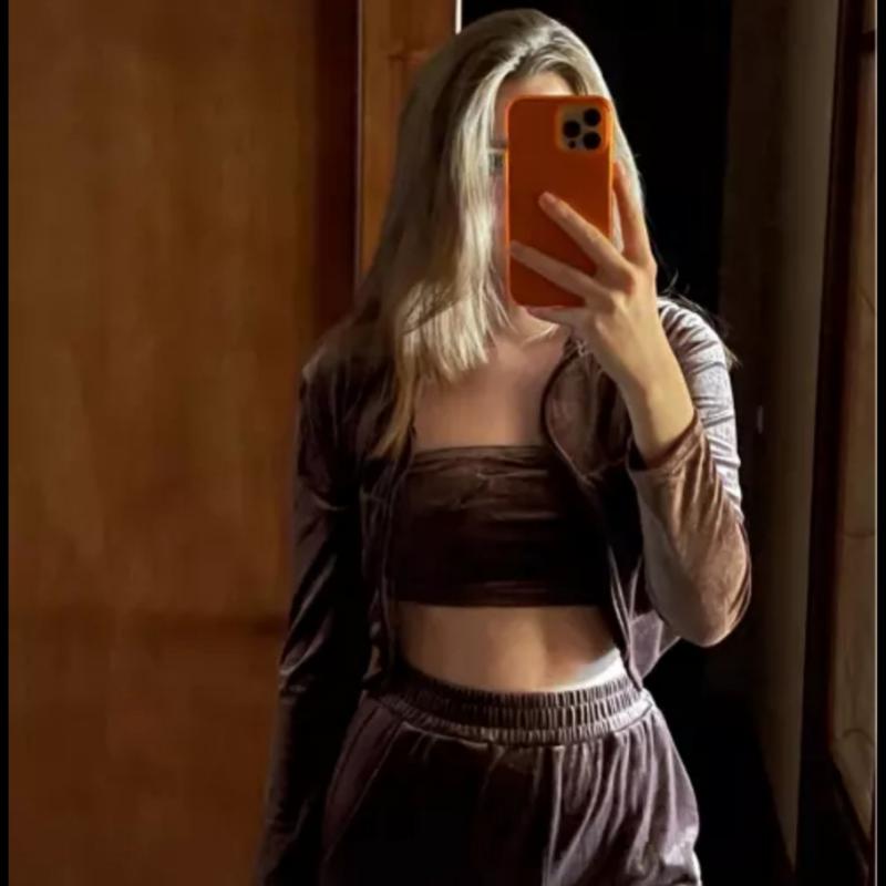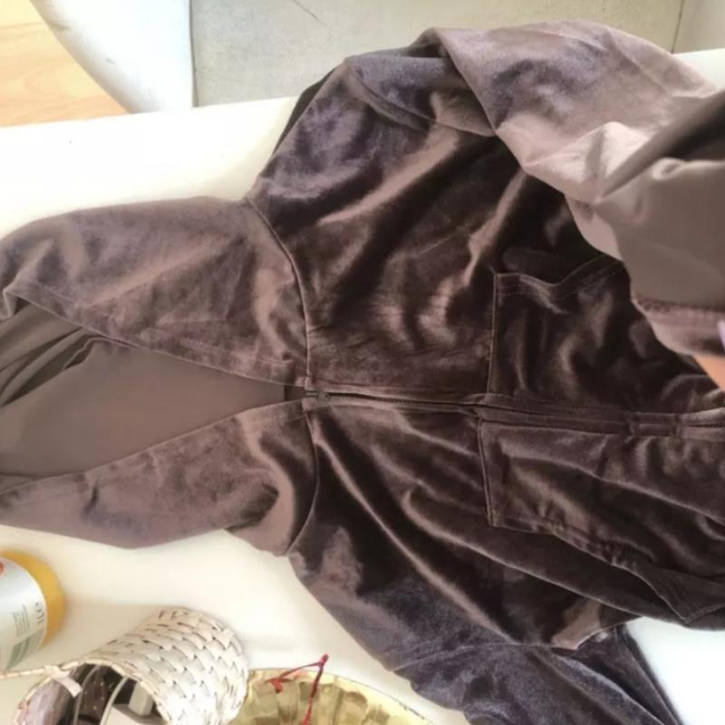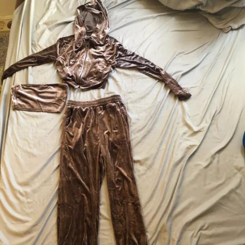 Трикотажный велюровый костюм. Цвет: coffee. Из 3 единиц: штаны, кофта и топ. Размер М.