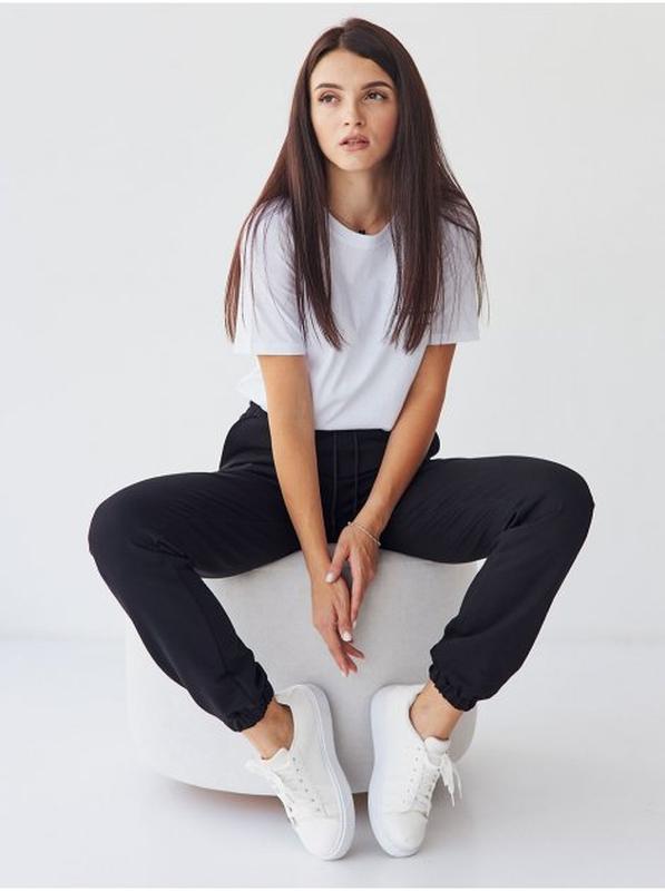 🔸️Нова модель виготовлена з двонитки чорного кольору. Штани напівприлеглого силуету на гумці до пояса та низу, з кишенями в бічних швах. Виріб декорований шнуром у тон на поясі штанів. Такі штани додадуть комфорту та практичності вашому повсякденному образу. Модель представлена в стандартній розмірній сітці, а також лінії сайз+.