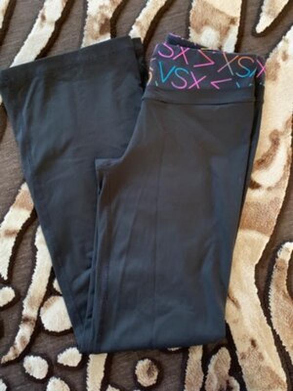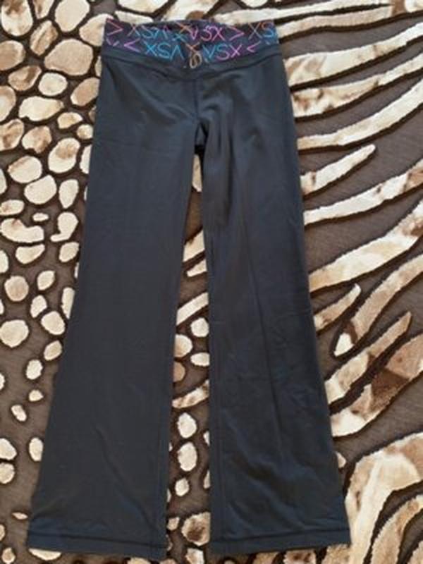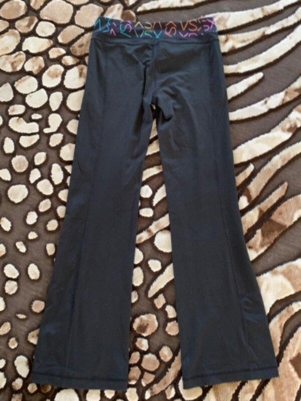 Чудові штани від Victoria s Secret, лінійка Sexy Sport, з еластичної тканини, зо два рази одягнуті і вже короткі, тканина еластична і компресійна. Довжина по зовнішньому шву- 97см, внутрішня- 74см, пояс- 35см, тягнеться до 46см в півоб'ємі,поб- 42см( тягнеться до 54см), посадка - 27см, штанка внизу- 23см.