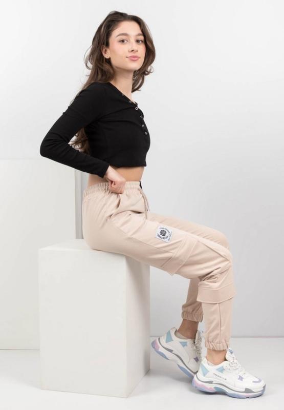 Размер M: полуобхват пояса 34 см, полуобхват бедер 46 см, высота посадки 30 см, внутренняя длина 68 см.