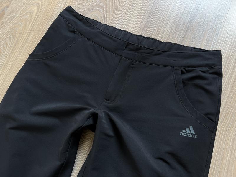 Женские спортивные штаны Adidas ClimaliteРазмер в см:1. Ширина в поясе: см2. Полуобхват бедер: см3. Длина: см4. Длинна по внутреннему: см5. Ширина штанины: см