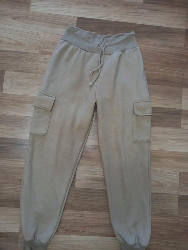 состояние идеальное, фасон джоггеры пот35, тянется до 50см, стягивается на кулиску поб53-56, посадка высокая перед 32,зад 35см,длина 100,низ манжет, полуобхват ляшки 30+ тянется, тоненький флис