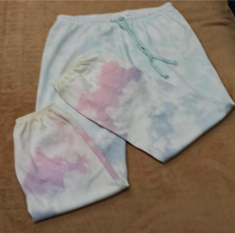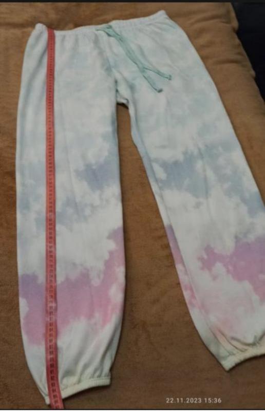 Женские трендовые (корейский стиль тай-дай) демисезонные брюки, очень приятная ткань на ощупь, х/б, в средние легкий флис, свободного кроя, на шнурке, низ штанин на резинке. Размер М, но подойдут за счет кроя к ОС 102см.