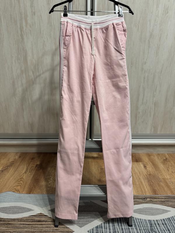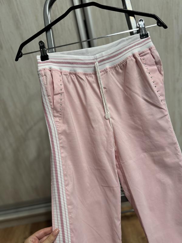 Очень крутые спортивные штаны прямого расклешенного кроя, по бокам белая полоска, новые, купила себе но немного не угадала с размером