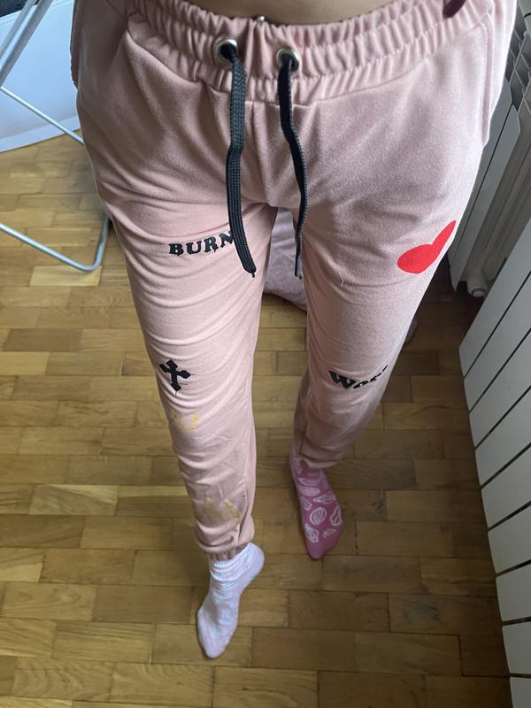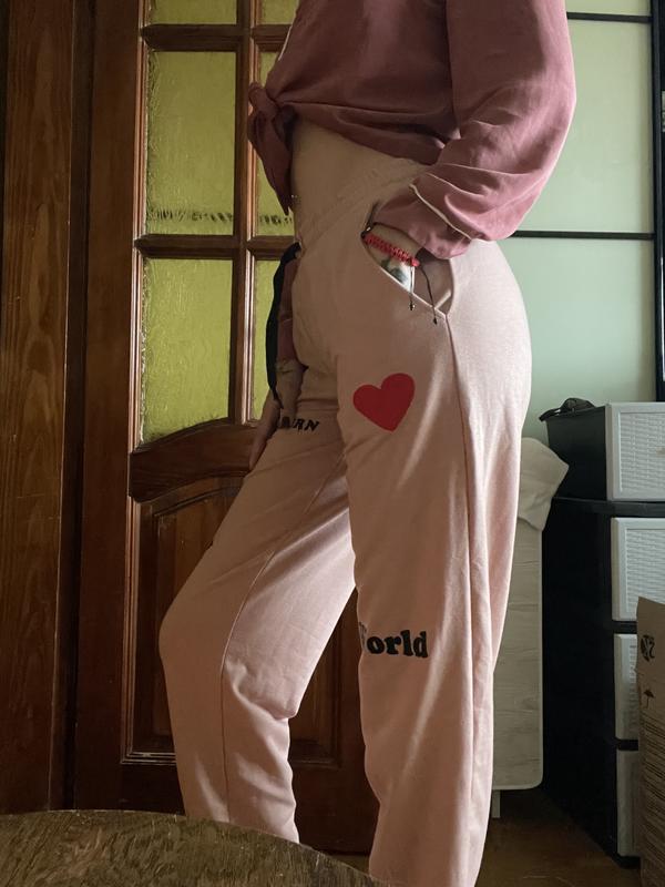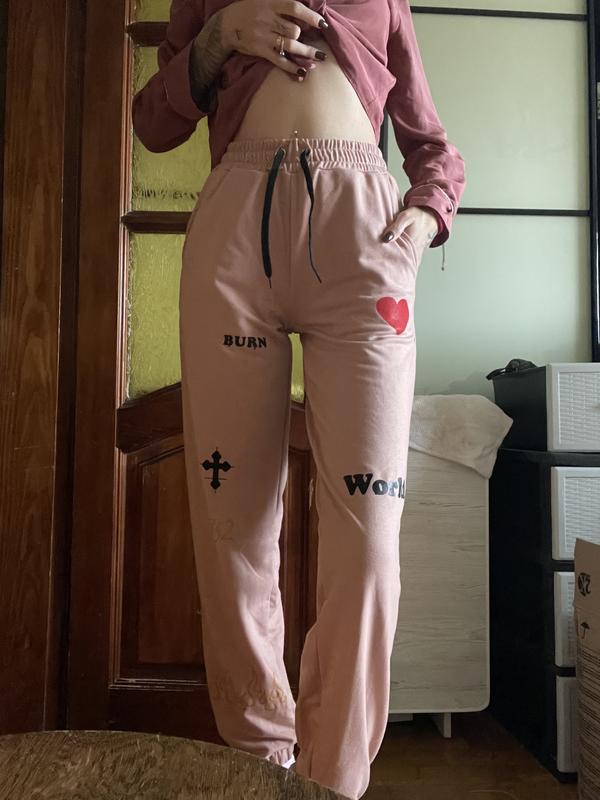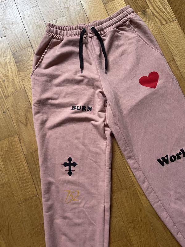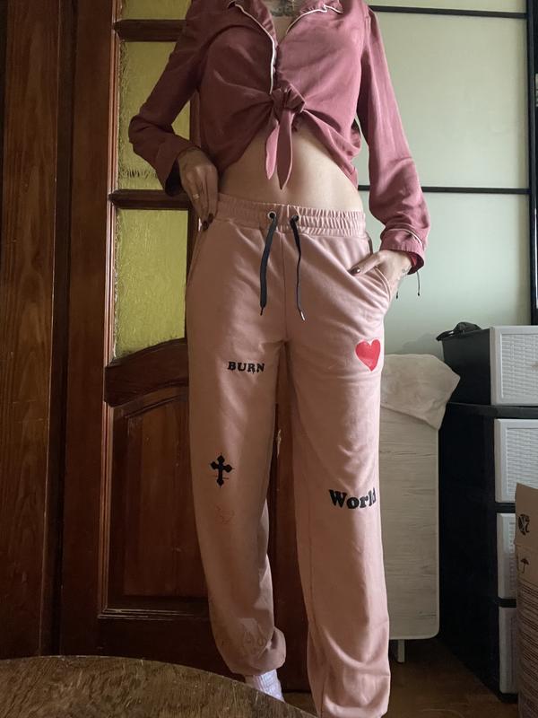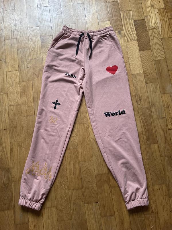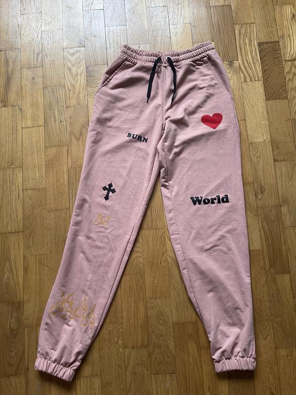 Спортивные штаны, М размер Нежно розового цвета На 175 см они до лодыжки С рисунками на манжетах с резинкой
