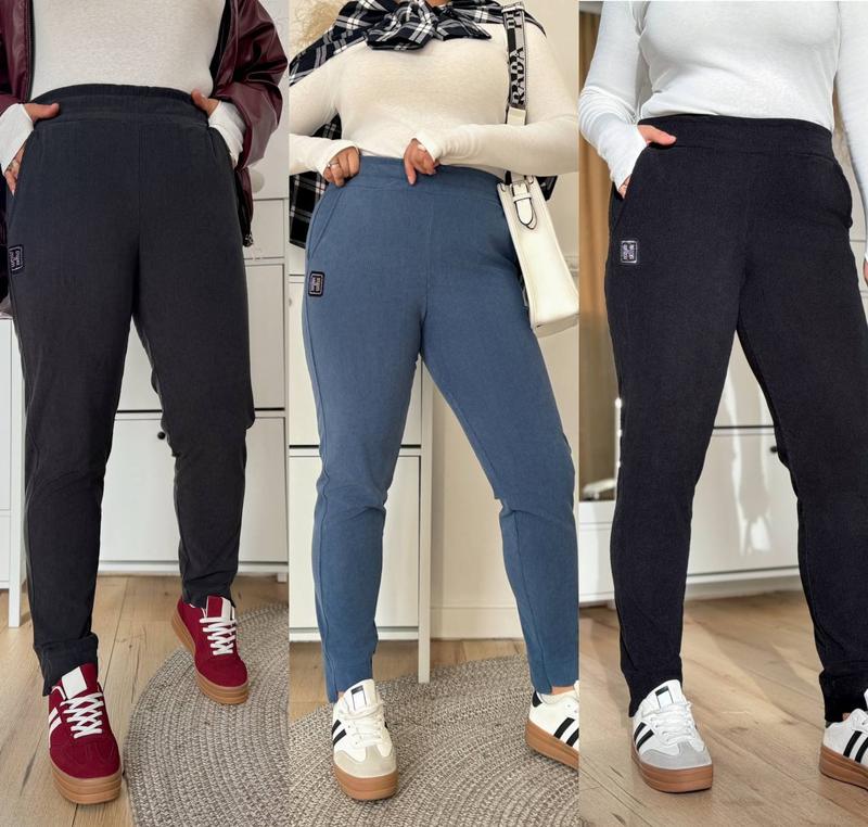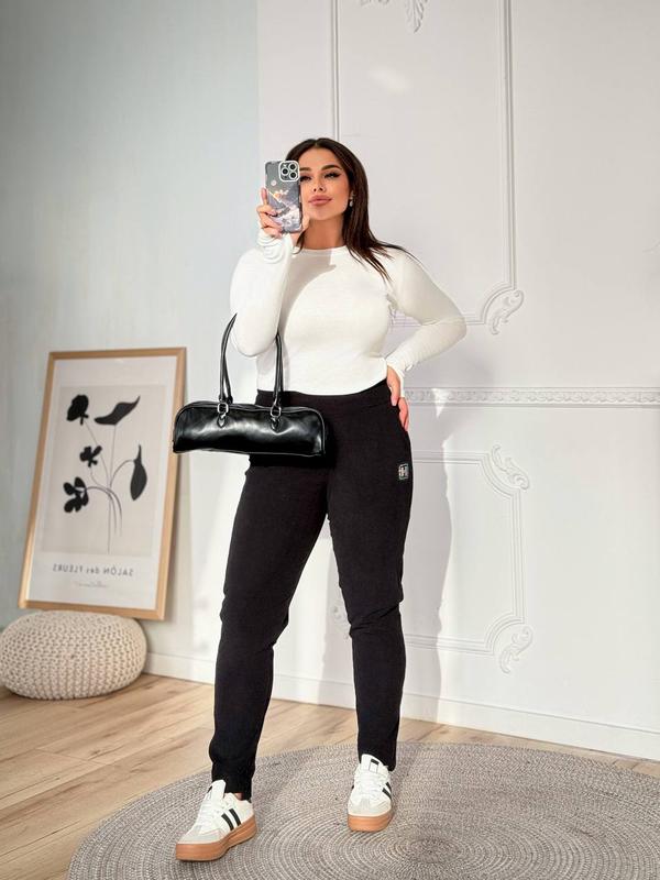 Брюки из вельвета супер качества, с карманами. Талия на резинке. Внизу спереди укороченные, сзади длинные. Высокая посадка Нашивка с стразами под карманом.