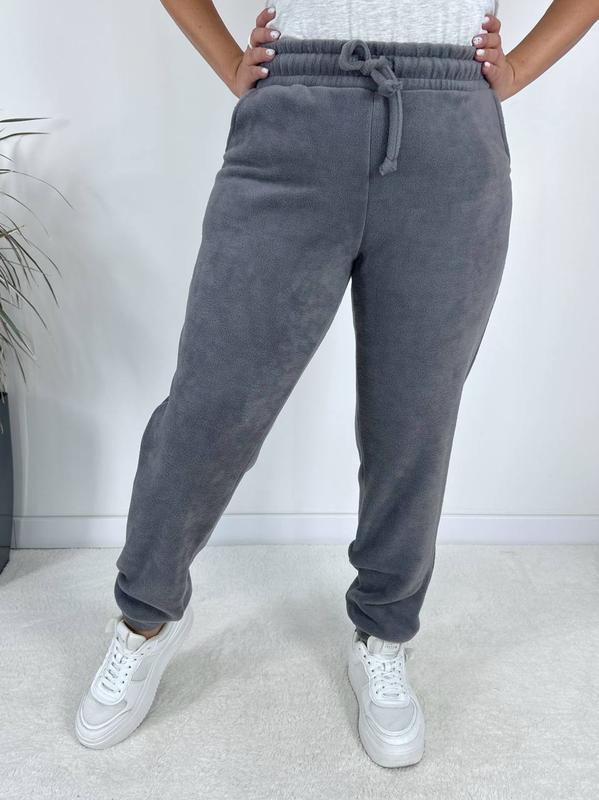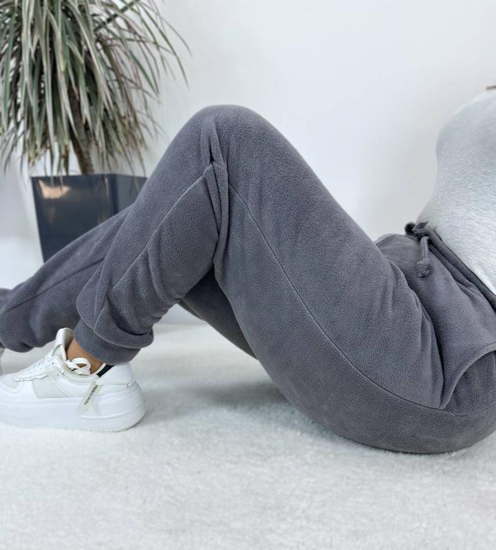 Теплые брюки из флиса высокой посадки, с карманами. Снизу манжеты. Талия на резинке с канатом.