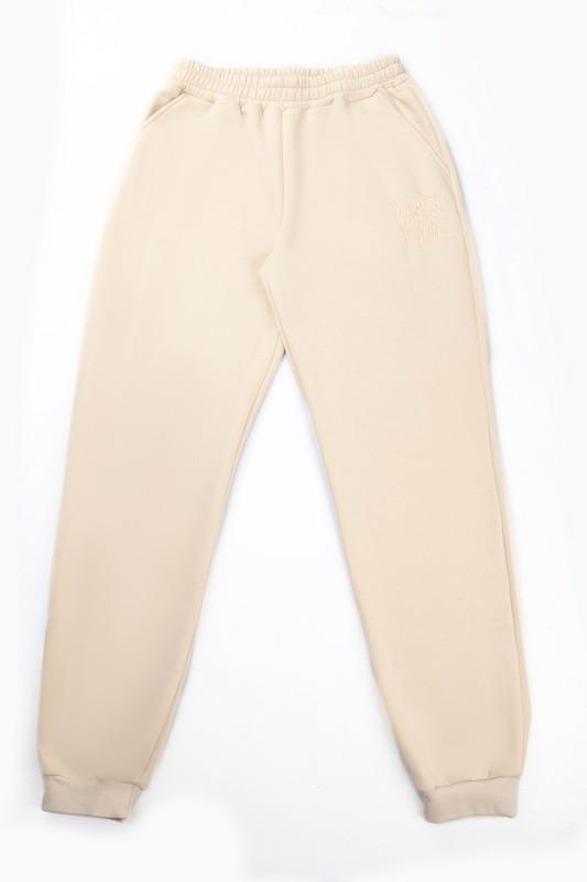 Очень удобные женские штаны для повседневного использования. Модель с карманами, на манжете по низу, с широким поясом и эластичной тесьмой, отстрочкой и шнурками. Возле кармана расположена вышивка, выполнена в тон полотна, который вышит на вышивочной машинке. Брюки выполнены в двух актуальных цветах. Полотно плотное, обладает хорошими теплоизоляционными свойствами, при правильном уходе может давать незначительную усадку после стирки. В них предусмотрено все: красота, удобство использования.