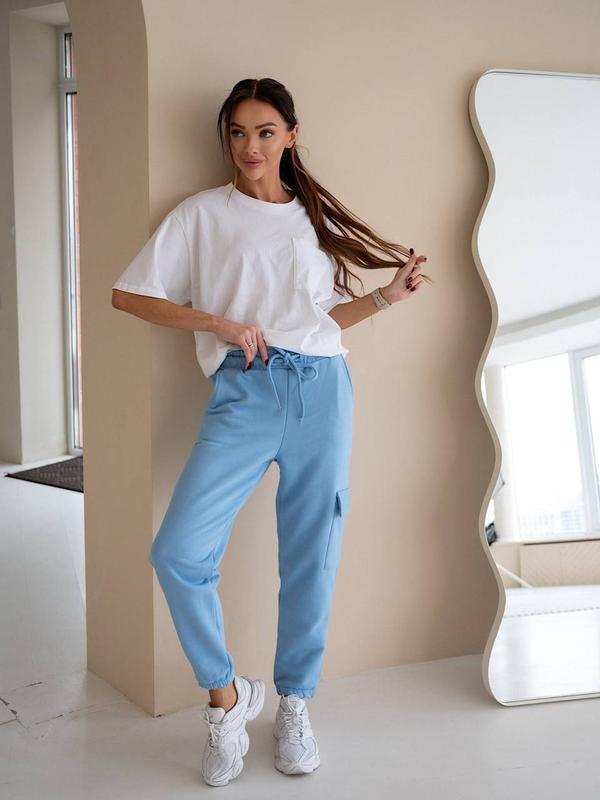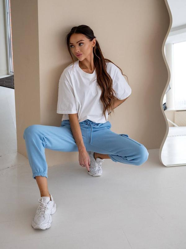 Спортивные штаны арт. 13.03сТкань: турецкая петля Размеры: 42-44, 46-48Цвета: молочный, голубой, розовый