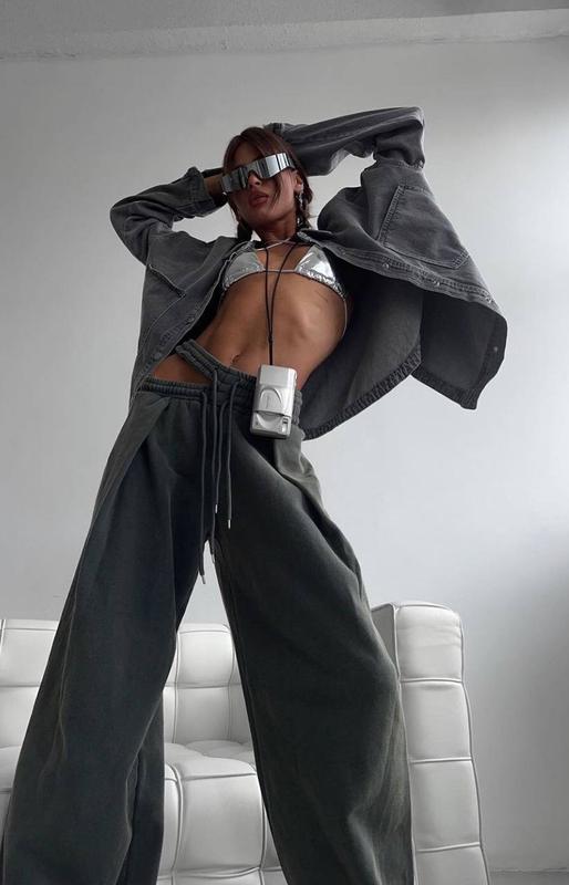 Штаны спортивные графит широкие