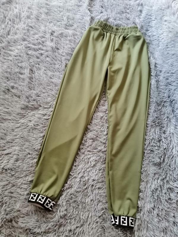 трикотажные спортивные штаны с манжетом акцентной резинкой высокая посадка