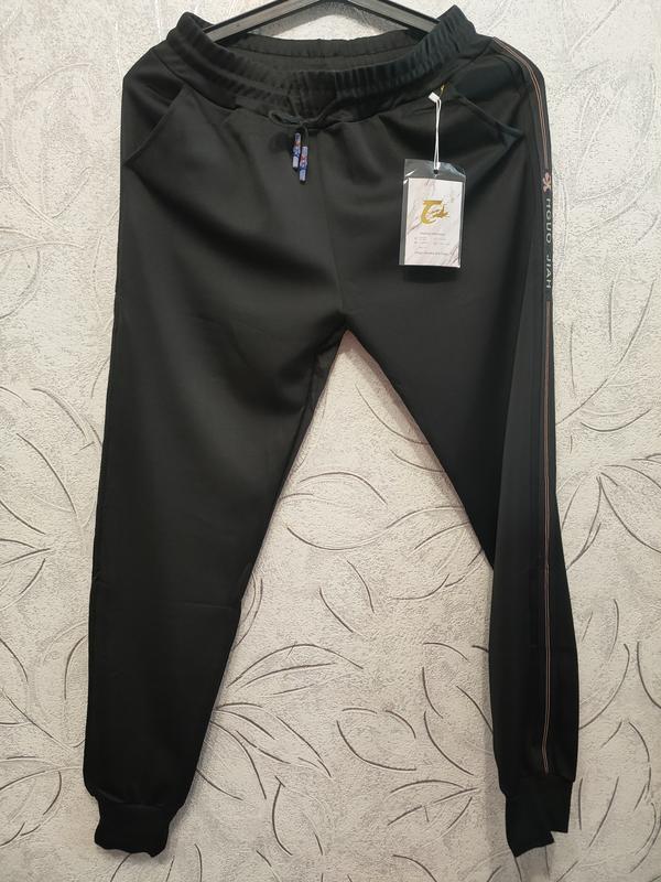 Замечательные спортивные штаны, НОВЫЕ ❣️ Хорошо подходят под любимую футболку,чи худи, можно создать свой спортивный костюм 👌, красиво подходят под футбоку 🥰, имеет боковые карманы,шнурок на талии, и красивые манжеты внизу! Модель брюк очень удачная, не длинная, не короткие и нормальная посадка ❣️Замеры: Пот-36(тягнеться -42) Поб-54 (тянется -58) Длина общая -96 Длина от шага-72 Посадка спереди-27 Посадка сзади-32