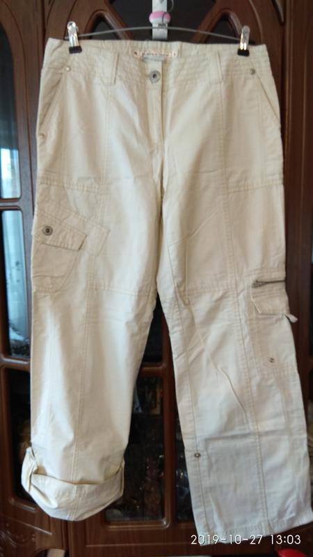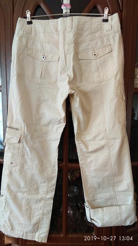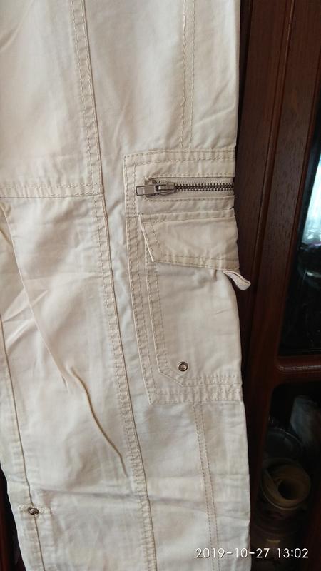 Спортивні штани, карго, розмір 42-44, загальний стан дуже хороший, є маленька дірочка, колір бежевий..