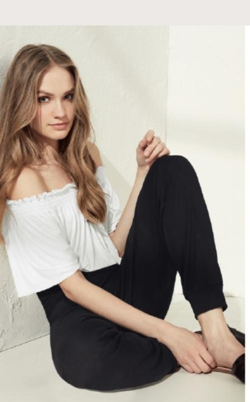 С глубоким шагом, штанины зауженные, есть боковые карманы, пояс на комфортной широкой резинке