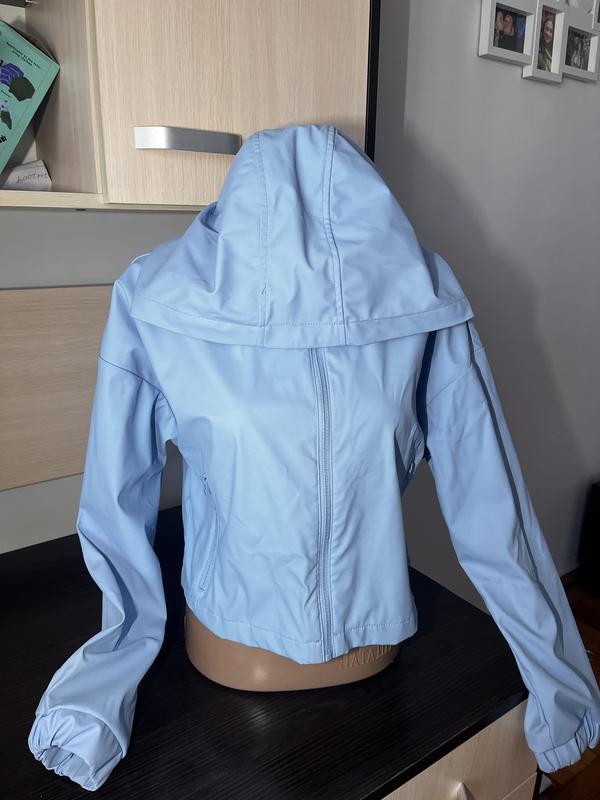 Женский прозрачный дождевик с капюшоном и козырьком с накладными карманами. дождевой плащ