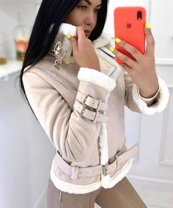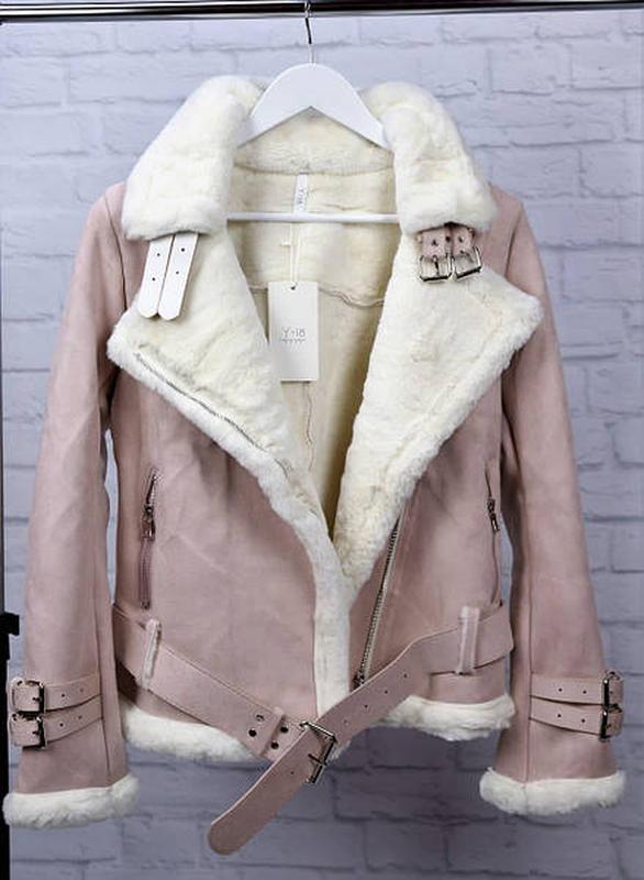 Замшевая дубленка цвета пудры, мех искусственный.на теплую зиму или холодную осень. состояние идеальное, один раз одета