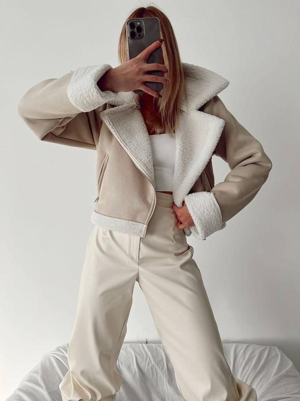 В наличии абсолютный must-have сезона осень-зима: эко дубленка-авиатор короткая на молнии в бежевом цвете ☁️