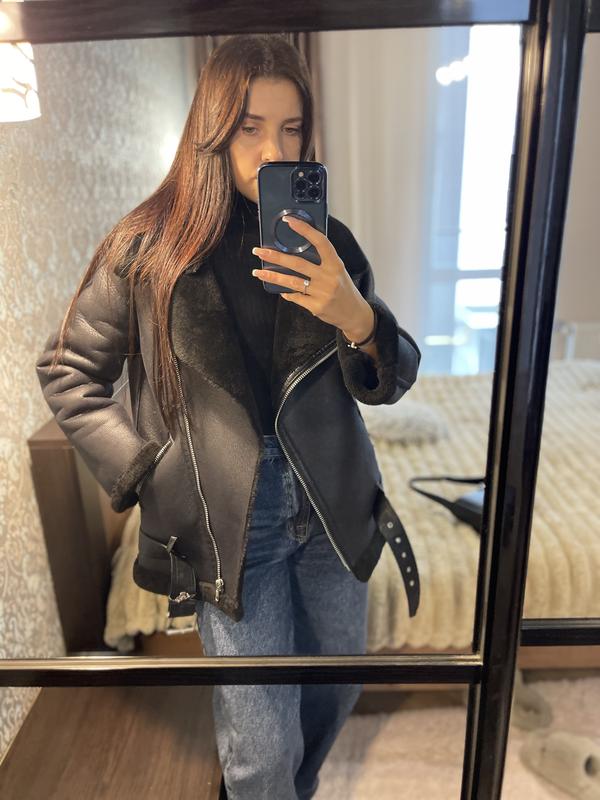 Дубленка basic - утепленная стильная женская дубленка на меху, дубленка косуха авиатор демисезонная куртка весна осень зима / 8025
