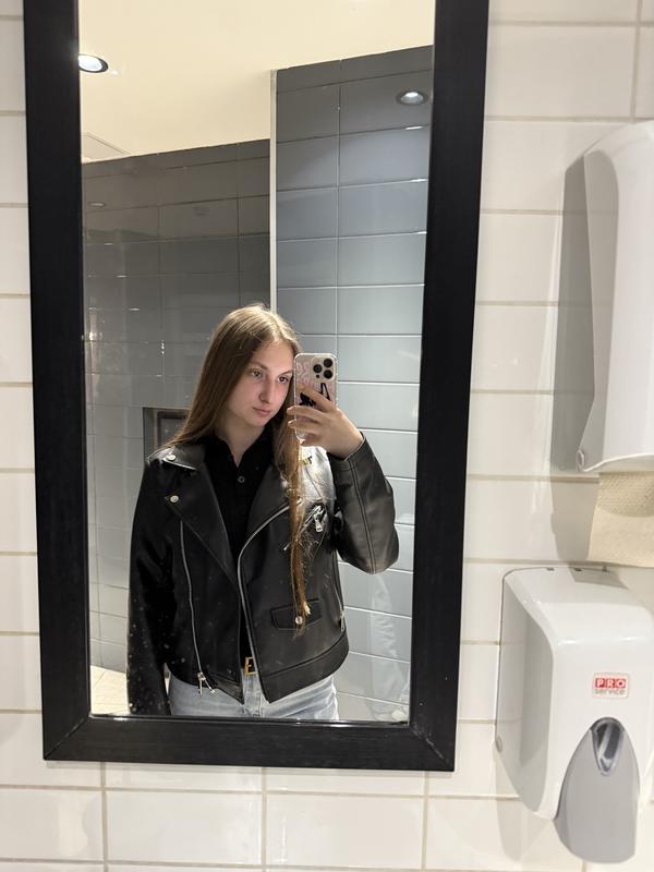 Жіноча косуха, дуже в гарному стані. На тілі виглядає дуже класно) Розмір пише що L, але в мене розмір S. Якщо потрібні більше фото пиши) Зроблена з экокожи