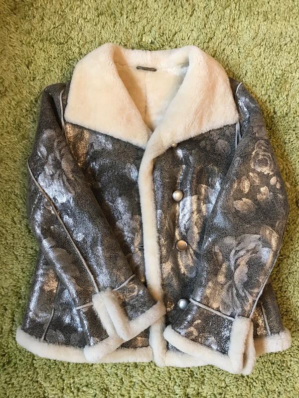 Дубленка, до бёдра, серебряная, с карманами, состояние б/у, есть дефект с пуговицей, удобная, тёплая, Италия, размер итальянский 46, французский 42, Доставка по всей Украине