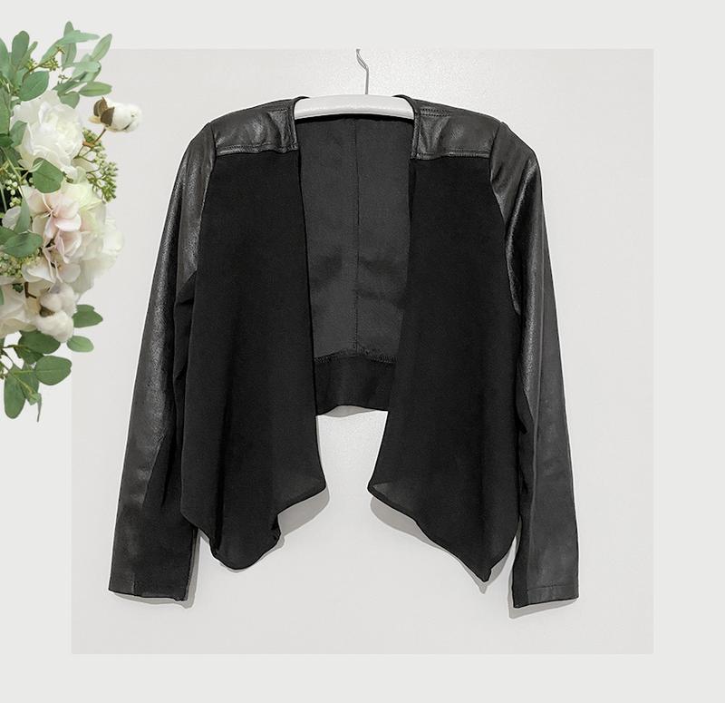 Черный короткий кардиган без застежек накидка куртка курточка ветровка пиджак жакет.