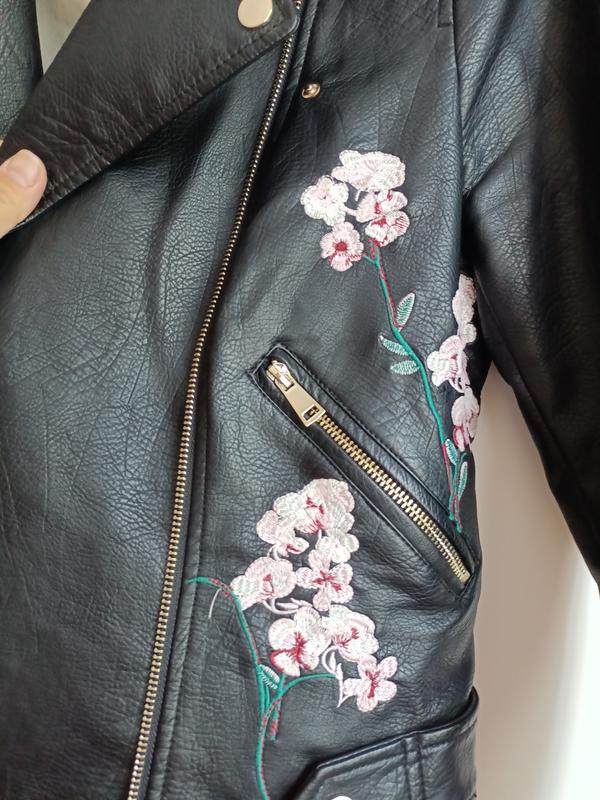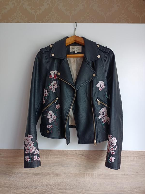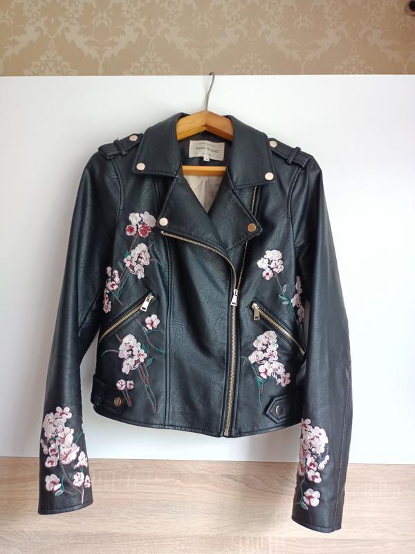 Крута косуха з кожзаму з вишивкою. Стан ідеальний. Розмір 12, River Island.