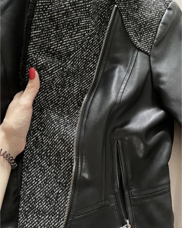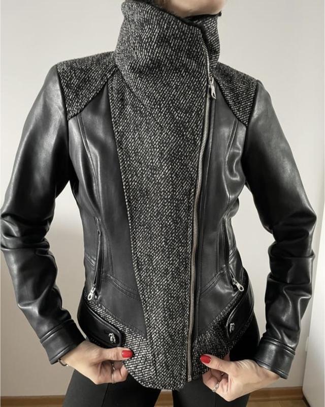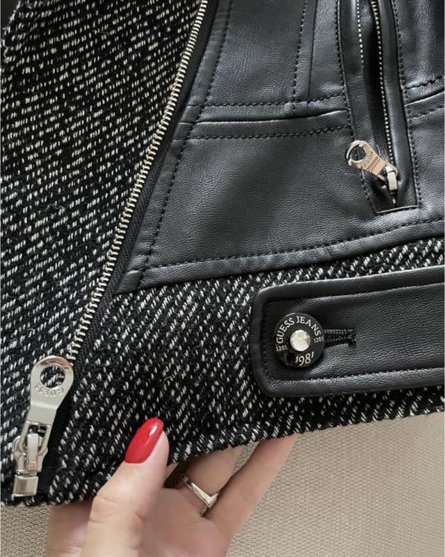 Крутая куртая из экокожи и натуральной шерсти от Guess. Идет на подкладке. Выглядит очень круто.