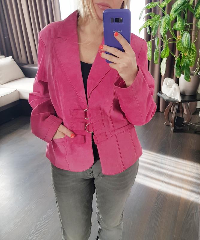 Кожаная замшевая куртка малинового цвета Натуральная замша Размер L - одет на размер М Состояние идеальное! Замеры Между плечами 44 см ПОГ 55 см ПОТ 46 см Рукав 62 см Длина 57 см
