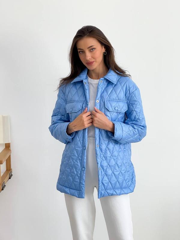 🔥Трендовая стеганая куртка-рубашка свободного кроя, имеет заниженную линию плеча, накладные нагрудные карманы, на кнопках цвета ткани