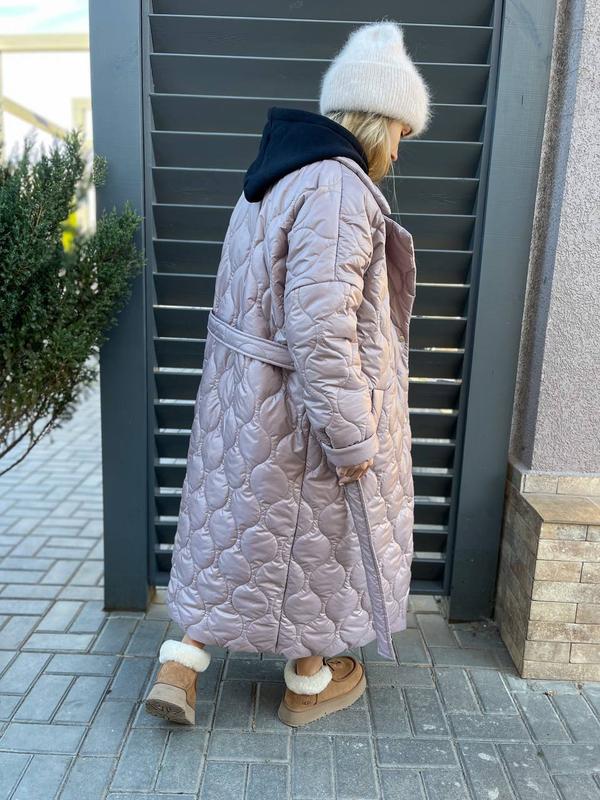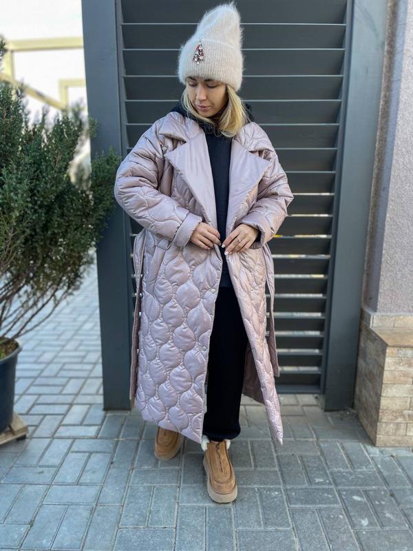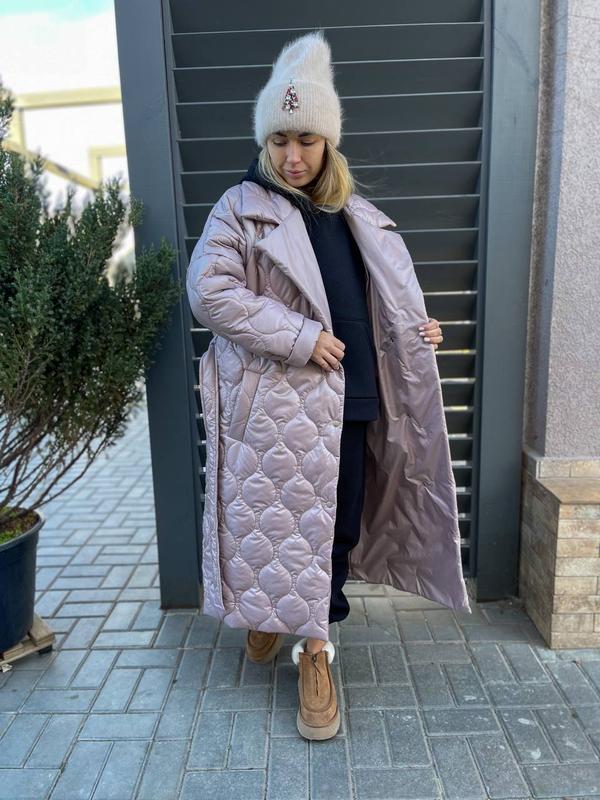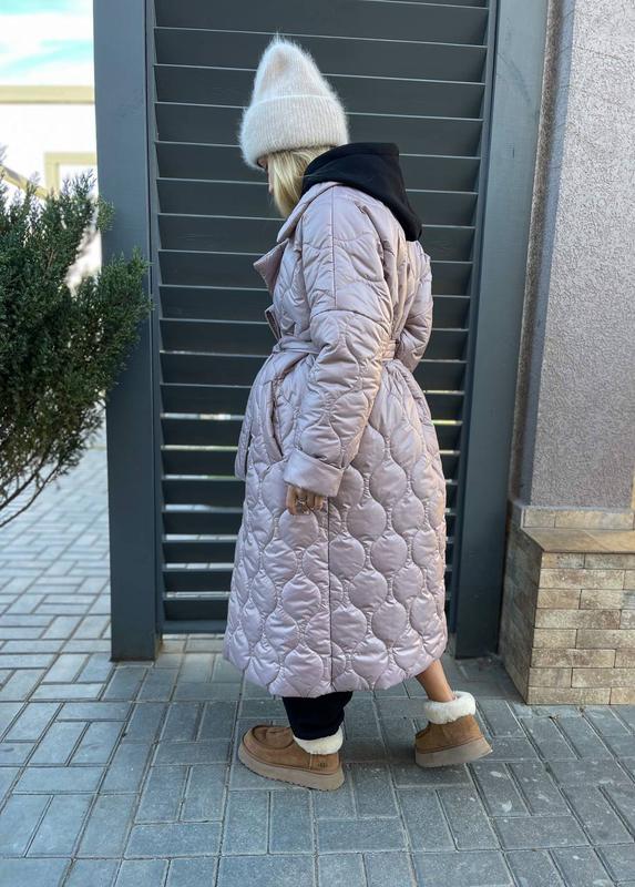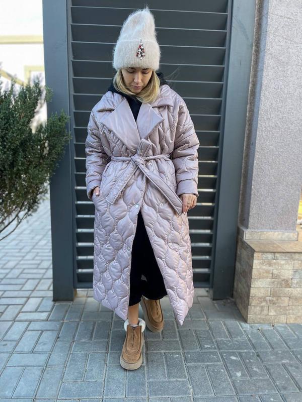 Зимнее пальто, застегивается на кнопки, в комплекте пояс. Подклад так же из плащевки, что обеспечит дополнительное тепло.