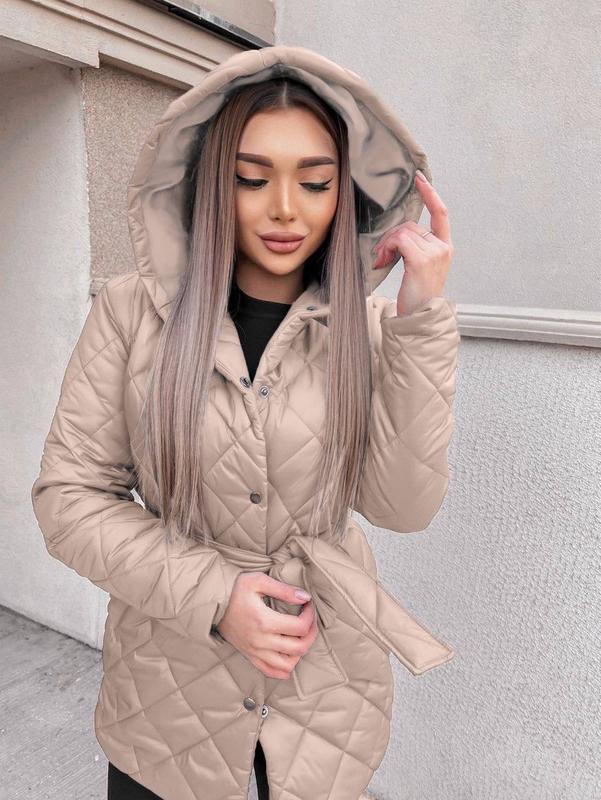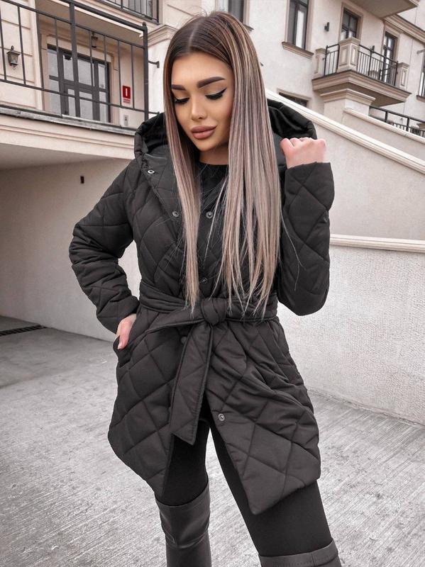Куртка🍁🥰арт. mag. 10354🫶Куртка женская стеганая с капюшоном, пояс в комплекте, карманы врезные, наполнитель силикон 200 🍂Ткань: плащевка🫶Размер: с-м, л-хл🔥Цена дроп/опт: 1299 грн