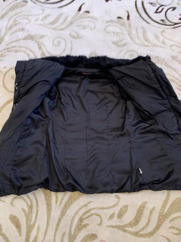 Приступившийся крой, на рукавах трикотажные вставки, застегивается на молнию и крючки, очень стильная!