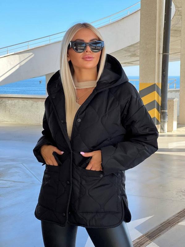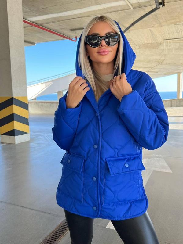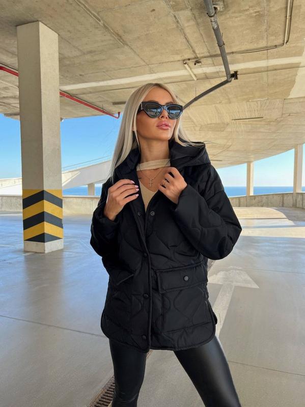 Куртка (весна), фото реал⠀▫️Размеры: 42-44, 46-48, 50-52▫️Цвета: черный, т.пудра, электрик▫️Ткань: плащевка матовая, наполнитель силикон 150⠀Отличное качество!⠀Модель 1039