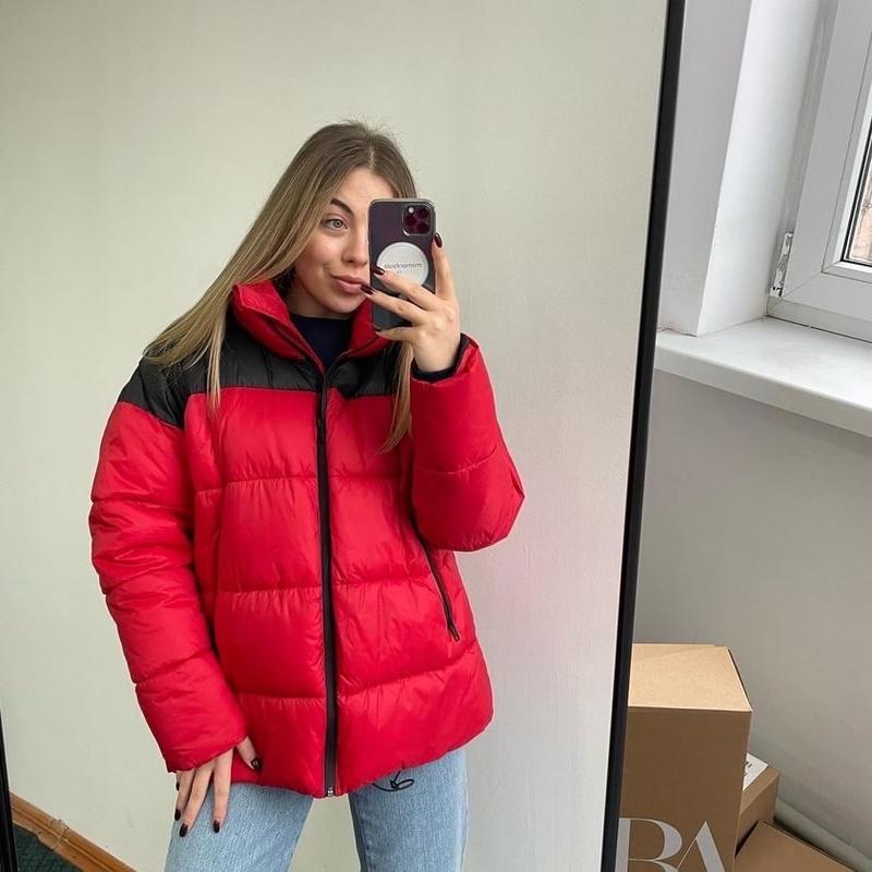 Куртка пуховик с капюшоном дута зима черная красная розовая белая