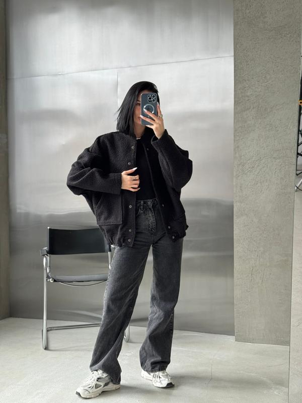 Бомбер на весну Фото реал Размеры : 1(42-44) 2(46-48) 3(50-52) Цена опт : 550 грн Опис: бомбер оверсайз , по низу резинка на кнопках Ткань: букле