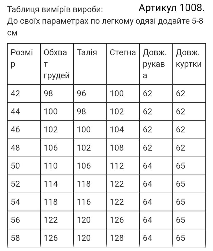 До своїх параметрах по легкому одязі додайте 5-8 см