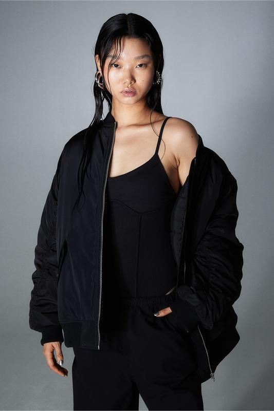 Женский бомбер известной фирмы H&M, в черном цвете. Может быть как куртка на весну, хорошо утеплена. Хорошее качество при умеренных затратах.