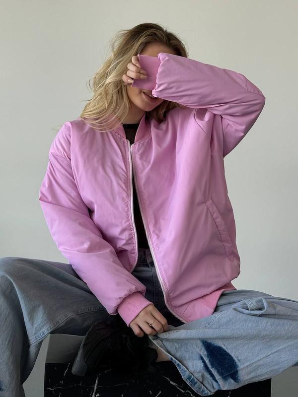 🖇️ФОТО РЕАЛ📸 Бомбер🚀 ▪Код товара: 815/62 ▪Ткань: плащевка+стеганная подкладка с синтепоном 100+ребена ▪Цвета: розовый, графит, молочный, черный ▪Размер:S-М; М-L Параметри на S-M: Длина изделия 70 см Длина рукава 80см ОГ 126 ОТ 116 📌Стильная новинка🔥Бомбер самая необходимая вещь в вашем весеннем гардеробе. Объемный как на фото, качественная ткань и фурнитура, на рукаве также молния. Горловина, манжеты и пояс из ребаны в цвет💣🔝Подкладка простегана с синтепоном 100🔥