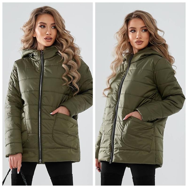 Осенняя стеганная женская куртка большого размера. Куртка свободного кроя с